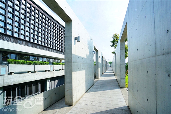 清水模穿廊與陽光交織出宛如人生中的陰晴,但走出廊道即迎向一片更為開闊的明亮/玩全台灣旅遊網特約記者小綠攝