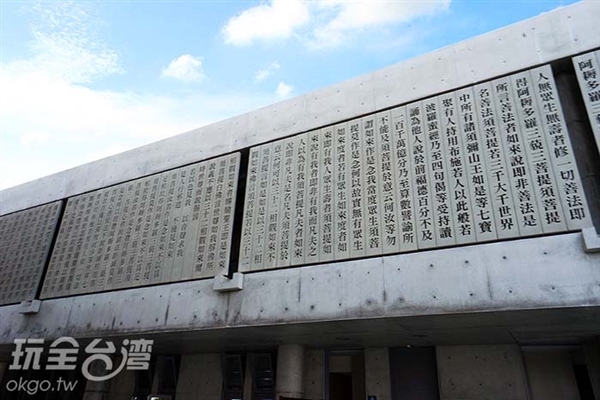 最特別的式在建築物的牆面都刻上整面的金剛經,不但莊嚴也彰顯出設計師與工匠的鬼斧神工。